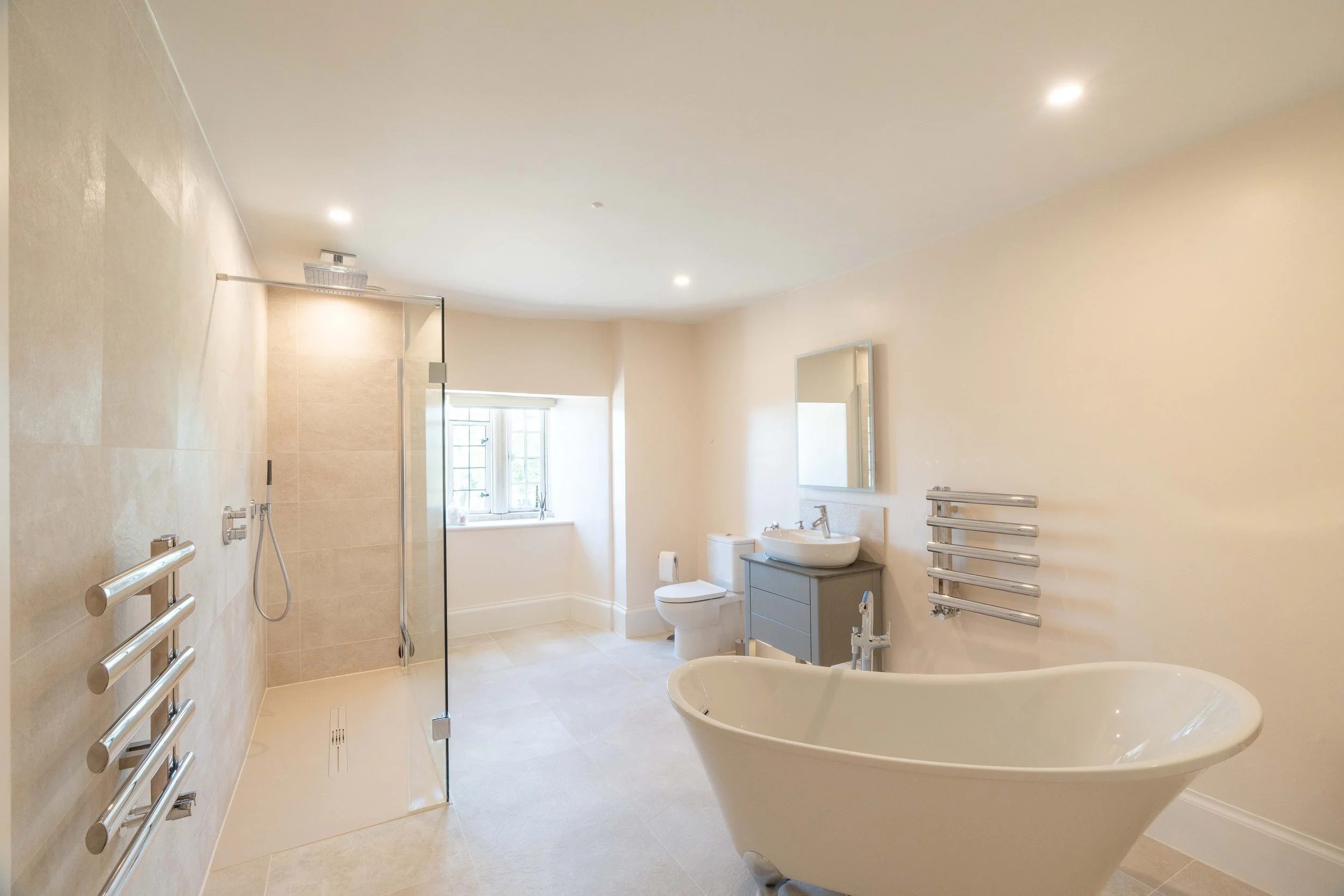 Every room has a remote Crestron temperature sensor, essential to keep the walls clean of clutter. The water UFH manifolds and electric UFH are all controlled by Crestron Din Rail thermostats. This allows scheduled heating scenes and direct override in any room via the touchscreens.